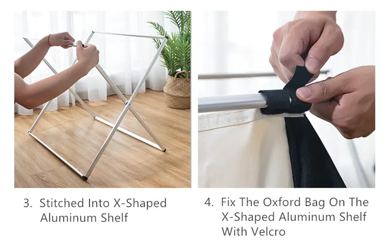 It's easy to transport with its drawstring attached to the top. Made from a durable material, it can easily hold 2 loads of standard laundry per section. The aluminum frame can be easily assembled and disassembled. The cloth bags are also detachable for easy storage and versatility.
